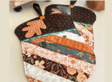 For Your Fall Kitchen and Thanksgiving Turn a simple scrap-buster into a heartwarming mini-quilt for your kitchen. String piecing scraps of fabric in fall colours and prints right
