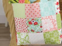 Follow me The Market Bag Quilt Pattern is a practical and enjoyable project that uses precut 5″ squares (charm packs) to create a 13″ tote-size bag. The pattern
