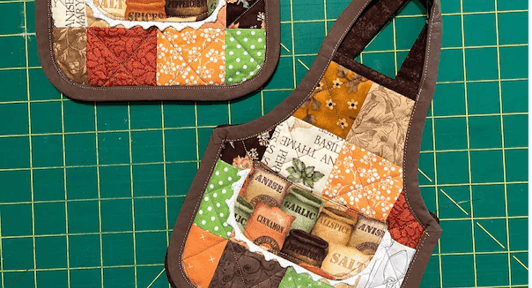 You won’t stop at two, they’re great for scraps since the pattern is mini charm friendly. Fun with fabric, fussy cut spice print fabric, or sunflowers for a bright and welcoming kitchen.
